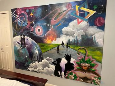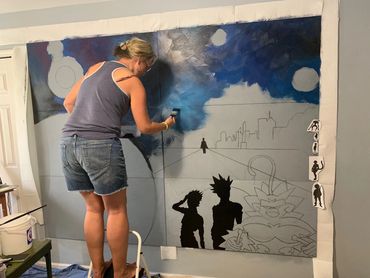 These mobile murals are painted on wood panels (Masonite or Birch) that can be pieced together and hung in one large section and then can be taken down and relocated to a new wall/space. These are a great solution for families who relocate often or for your child as they grow up and live in a space of their own.